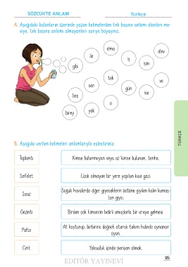 A� Aşağıdaki balonların üzerinde yazan kelimelerden tek başına anlamı olanları ma-