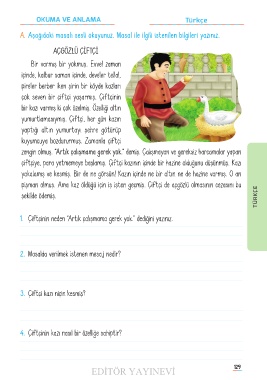 A� Aşağıdaki masalı sesli okuyunuz. Masal ile ilgili istenilen bilgileri yazınız.