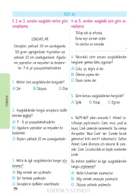 1, 2 ve 3. soruları aşağıdaki metne göre 4 ve 5. soruları aşağıdaki şiire göre ce-