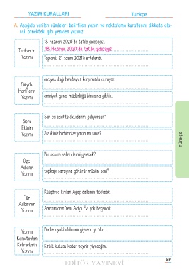 A� Aşağıda verilen cümleleri belirtilen yazım ve noktalama kurallarını dikkate ala-