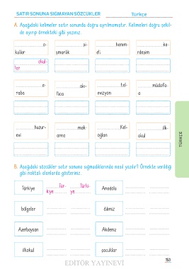 A� Aşağıdaki kelimeler satır sonunda doğru ayrılmamıştır. Kelimeleri doğru şekil-