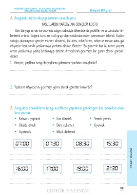 B. Aşağıdaki etkinliklerin hangi saatlerde yapılması gerektiğini boş bırakılan alan-
