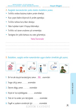 y Yolda kaybolan kişileri itfaiyeye bildirmeliyiz.