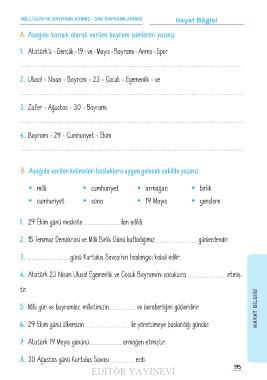 A� Aşağıda karışık olarak verilen bayram isimlerini yazınız.