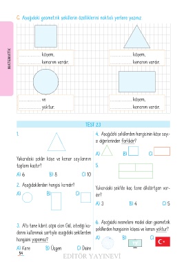 C� Aşağıdaki geometrik şekillerin özelliklerini noktalı yerlere yazınız.