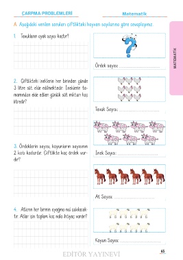 A� Aşağıdaki verilen soruları çiftlikteki hayvan sayılarına göre cevaplayınız.