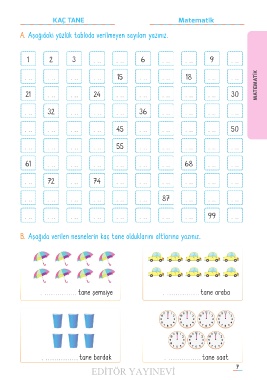 B. Aşağıda verilen nesnelerin kaç tane olduklarını altlarına yazınız.