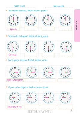 A� Tam saatleri okuyunuz. Noktalı alanlara yazınız.