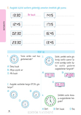 E� Aşağıdaki dijital saatlerin gösterdiği zamanları örnekteki gibi yazınız.