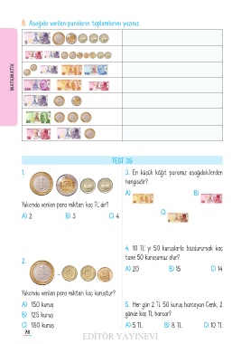 1. 3� En küçük kâğıt paramız aşağıdakilerden