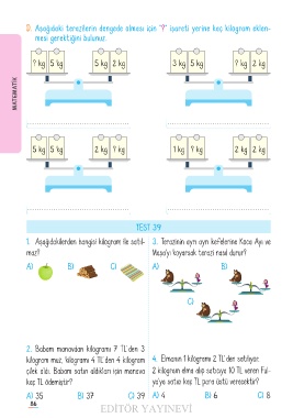 1. Aşağıdakilerden hangisi kilogram ile satıl- 3� Terazinin ayrı ayrı kefelerine Koca Ayı ve