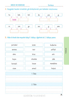 A� Aşağıdaki heceleri örnekteki gibi birleştirerek yeni kelimeler oluşturunuz.