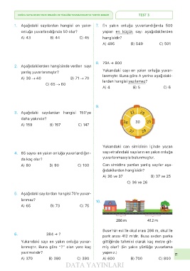 DOĞAL SAYILARI EN YAKIN ONLUĞA VE YÜZLÜĞE YUVARLAYALIM VE TAHMİN EDELİM TEST 3