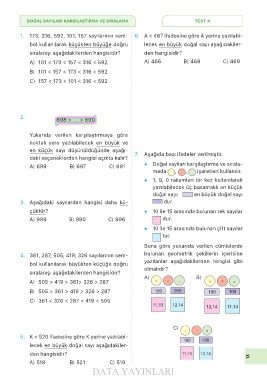 1. 173, 316, 592, 101, 157 sayılarının sem- 6. A < 467 ifadesine göre A yerine yazılabi-