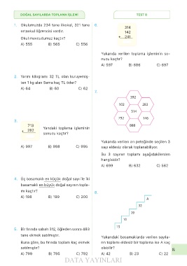 DOĞAL SAYILARDA TOPLAMA İŞLEMİ TEST 8