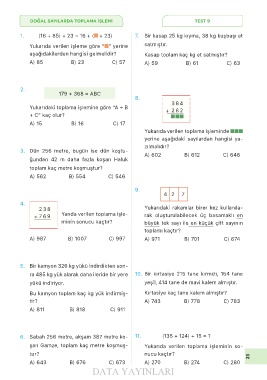 DOĞAL SAYILARDA TOPLAMA İŞLEMİ TEST 9