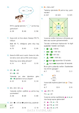 15. 24 + ● = 41 ise ● yerine kaç yazılmalı- A) = 30, ▲ = 16