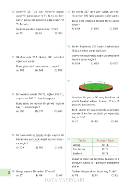 10. Adem’in 25 TL’si var. Kenan’ın parası 15. Bir otelde 257 tane yerli turist, yerli tu-