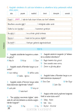 C� Aşağıdaki cümlelerde altı çizili olan kelimelerin eş anlamlılarını bulup yanlarındaki noktalı