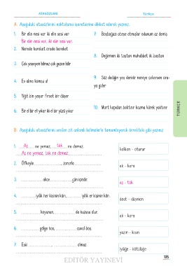 A� Aşağıdaki atasözlerini noktalama işaretlerine dikkat ederek yazınız.