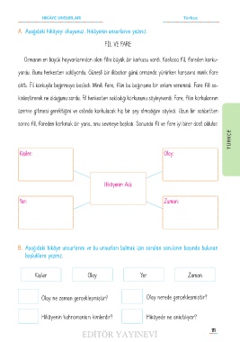 A� Aşağıdaki hikâyeyi okuyunuz. Hikâyenin unsurlarını yazınız.