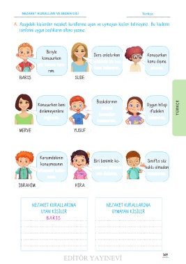 A� Aşağıdaki kişilerden nezaket kurallarına uyan ve uymayan kişileri belirleyiniz. Bu kişilerin