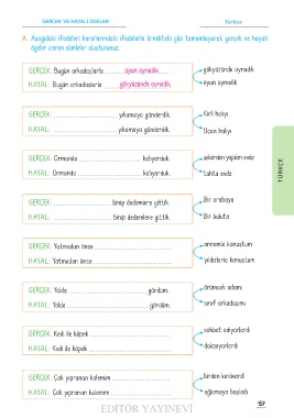 A� Aşağıdaki ifadeleri karşılarındaki ifadelerle örnekteki gibi tamamlayarak gerçek ve hayali