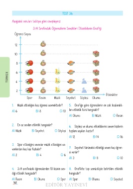 4� 3/A sınıfındaki öğrencilerden 10 kişinin sev- 8� Grafikte top sembolüyle belirtilen etkinlik