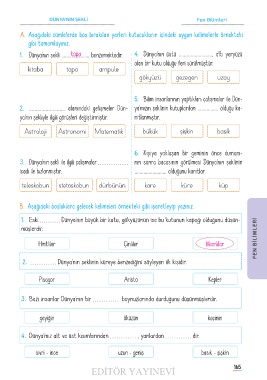 A� Aşağıdaki cümlelerde boş bırakılan yerleri kutucukların içindeki uygun kelimelerle örnekteki