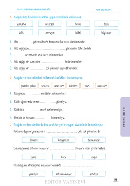 A� Aşağıda boş bırakılan kısımları uygun sözcüklerle doldurunuz.