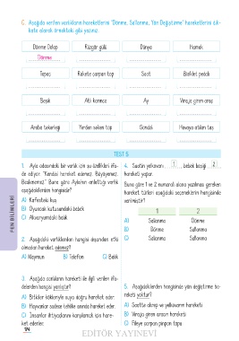 C� Aşağıda verilen varlıkların hareketlerini “Dönme, Sallanma, Yön Değiştirme” hareketlerini dik-