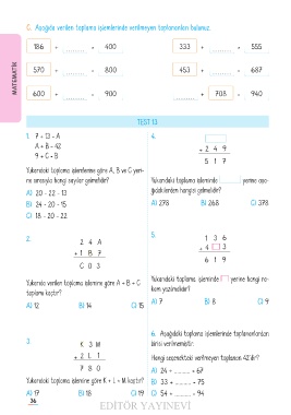 6� Aşağıdaki toplama işlemlerinde toplananlardan