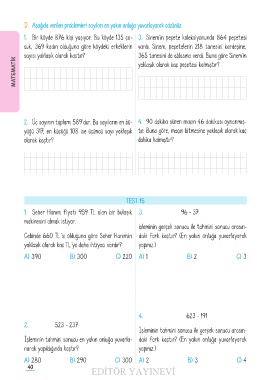 2� Üç sayının toplamı 589’dur. Bu sayıların en bü- 4� 90 dakika süren maçın 46 dakikası oynanmış-