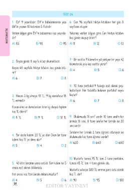 1� Elif 9 yaşındadır. Elif’in babaannesinin yaşı 6� Can 96 sayfalık hikâye kitabının her gün 8