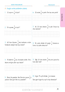 3� 60 tane bilyemin ’ünü kardeşime verdim. 8� Bir çiçekçi elindeki 48 çiçeğin tanesini sa-