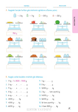 8� 6000 g = kg 16� 4 tane 500 g = kg