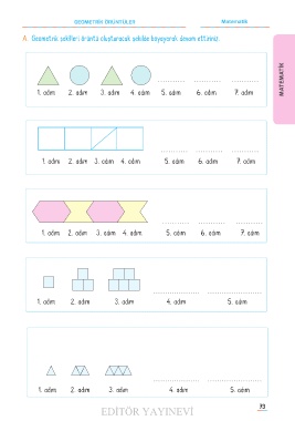 A� Geometrik şekilleri örüntü oluşturacak şekilde boyayarak devam ettiriniz.