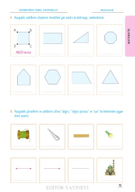A� Aşağıdaki şekillerin köşelerini örnekteki gibi nokta ile belirleyip, isimlendiriniz.