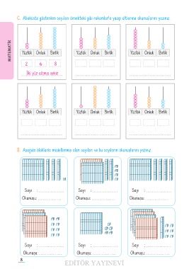 C� Abaküste gösterilen sayıları örnekteki gibi rakamlarla yazıp altlarına okunuşlarını yazınız.