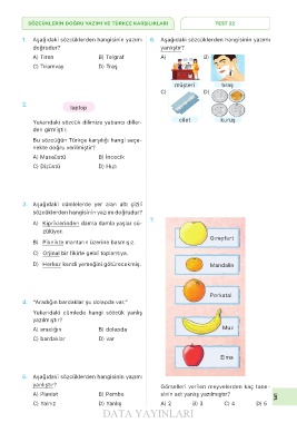 SÖZCÜKLERİN DOĞRU YAZIMI VE TÜRKÇE KARŞILIKLARI TEST 22