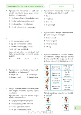 VARLIKLARIN ÖZELLİKLERİNİ BİLDİREN SÖZCÜKLER TEST 23