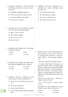 10. Aşağıdaki cümlelerde “-lık/-lik/-luk/-lük” 15. Aşağıdaki cümlelerin hangisinde “bu”