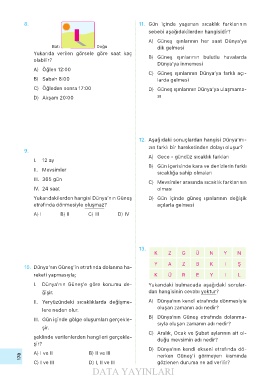 I. Dünya’nın Güneş’e göre konumu de- Yukarıdaki bulmacada aşağıdaki sorular-