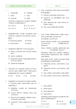 MADDEYİ NİTELEYEN ÖZELLİKLER TEST 10