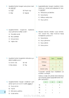 9. Aşağıdakilerden hangisi suda yüzen mad- 13. Aşağıdakilerden hangisi maddeleri birbi-