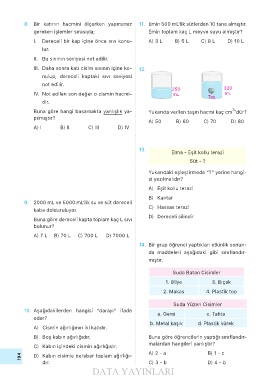8. Bir katının hacmini ölçerken yapmamız 11. Emin 500 mL’lik sütlerden 10 tane almıştır.