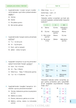 KARIŞIMLARI AYIRMA YÖNTEMİ TEST 15