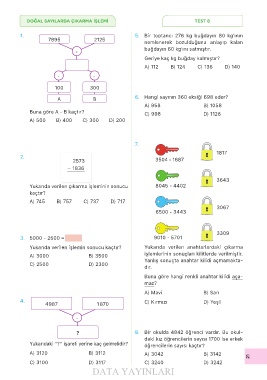 DOĞAL SAYILARDA ÇIKARMA İŞLEMİ TEST 8