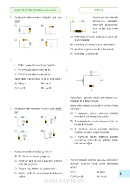 1. Aşağıdaki devrelerden hangisi ışık ver- 5. Yanda verilen elektrik