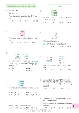 ÇIKARMA İŞLEMİNDE VERİLMEYENİ BULMA TEST 9